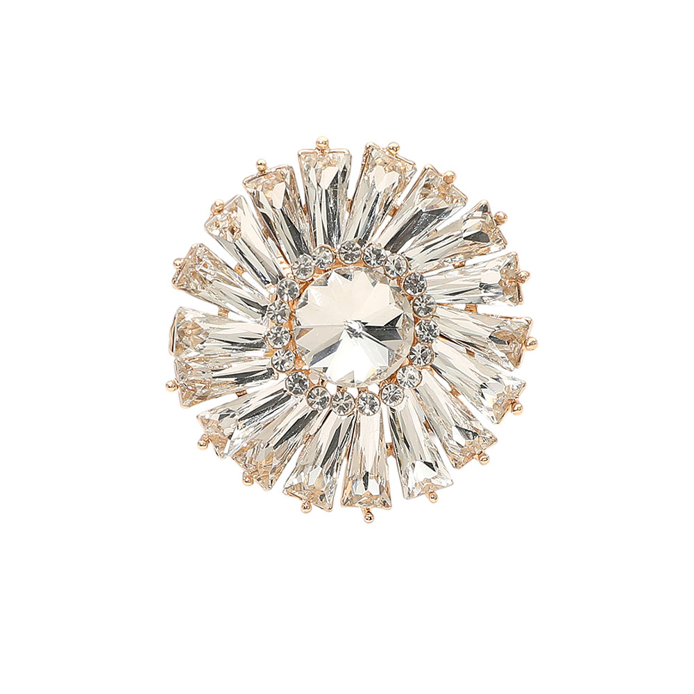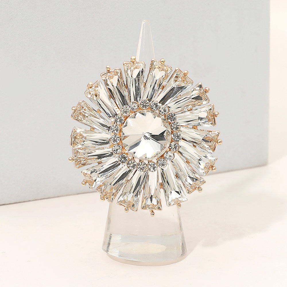 • Bold sunburst statement ring featuring a faceted center and radiant surrounding accents for dramatic sparkle and eye-catching impact. Ideal for parties, special occasions, gifting, or elevating everyday looks with a glamorous focal piece that delivers standout style and confidence.