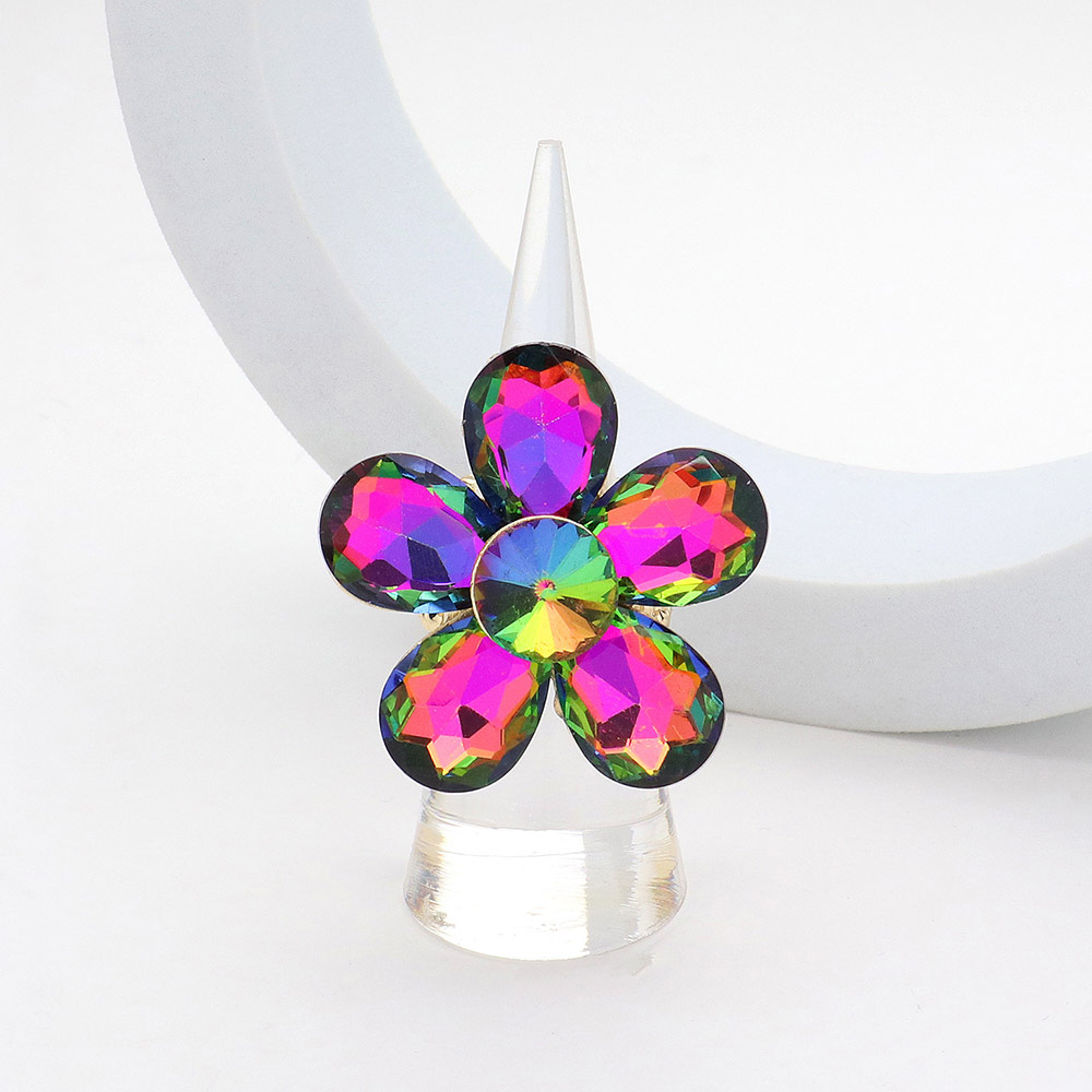 • Elegant flower-shaped statement ring featuring a dazzling faceted petal design that catches the light beautifully. Perfect for adding a bold, eye-catching accent to any outfit, this gem-inspired accessory enhances your style with its unique shape and sparkling radiance.