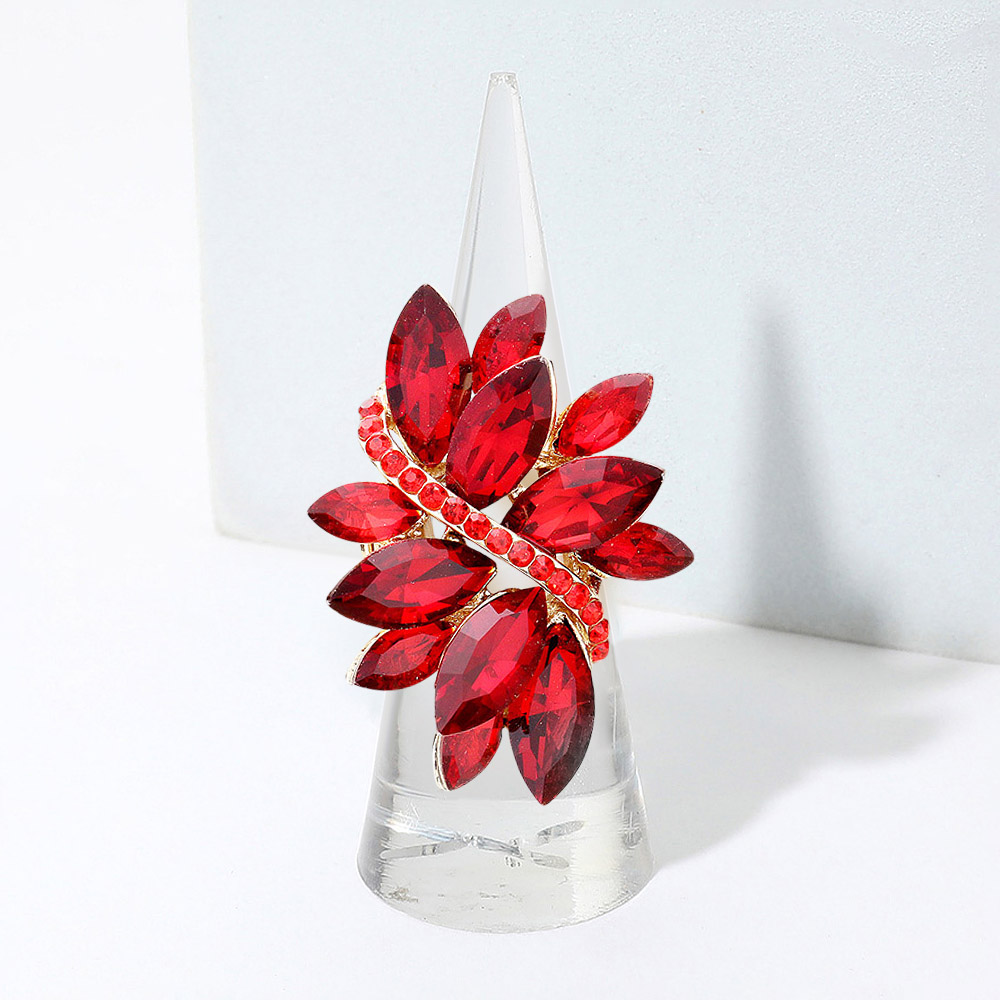 Details • Size : 1" X 1.5" • Stretchable • Shine bright with a statement cocktail ring designed in a striking crystal leaf motif. Featuring multi-faceted stones and dazzling sparkle, this glamorous accessory is perfect for parties, special occasions, or elevating everyday outfits with bold elegance.