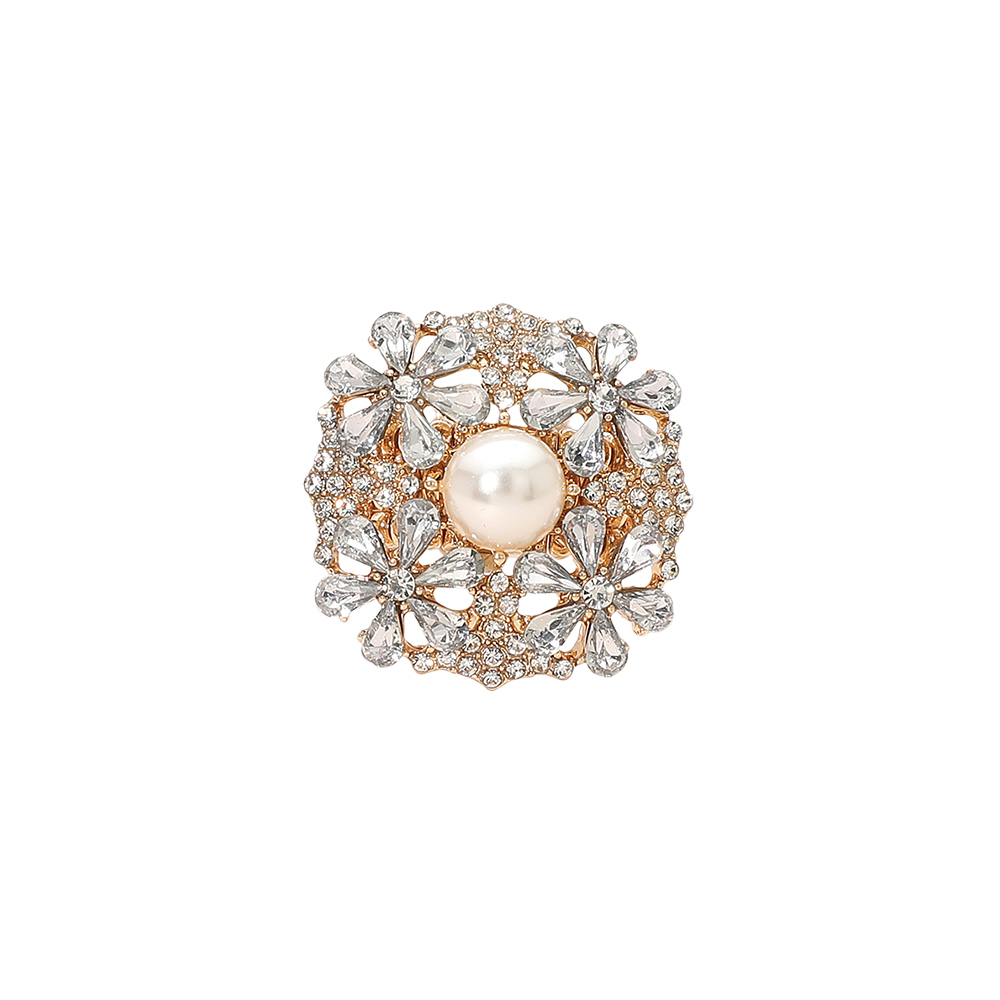 Pearl Centered Rhinestone Embellished Blossom Stretch Statement Ring