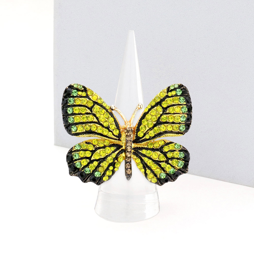 Rhinestone Embellished Metal Butterfly Stretch Ring