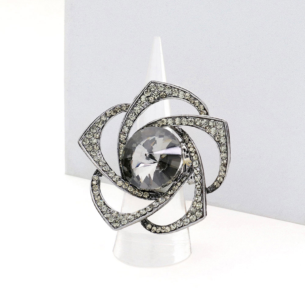 Round Stone Centered Rhinestone Flower Stretch Ring