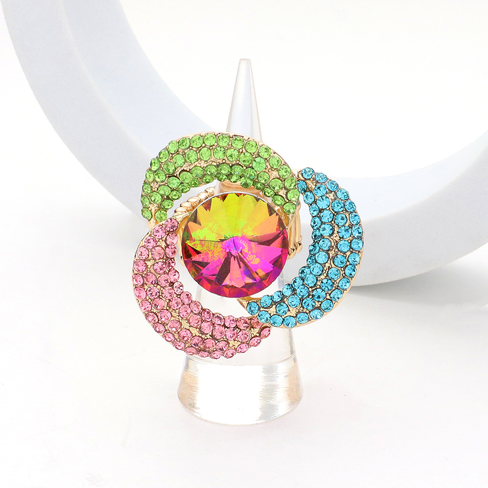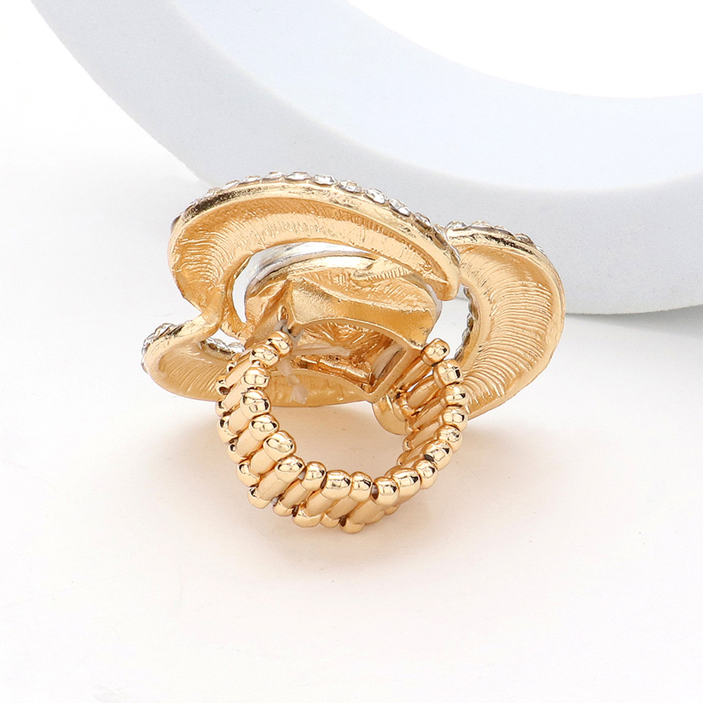 Round Stone Centered Rhinestone Paved Flower Stretch Ring