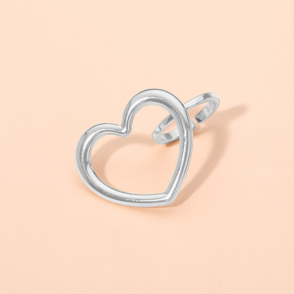 Details • Size : 0.7" H • Adjustable • Water Resistant • This open heart stainless steel ring is a charming symbol of love and style. Crafted with a hypoallergenic finish and adjustable design for a comfortable fit, it’s a versatile piece perfect for everyday wear or gifting, offering both elegance and durability. • Hypoallergenic • Stainless Steel