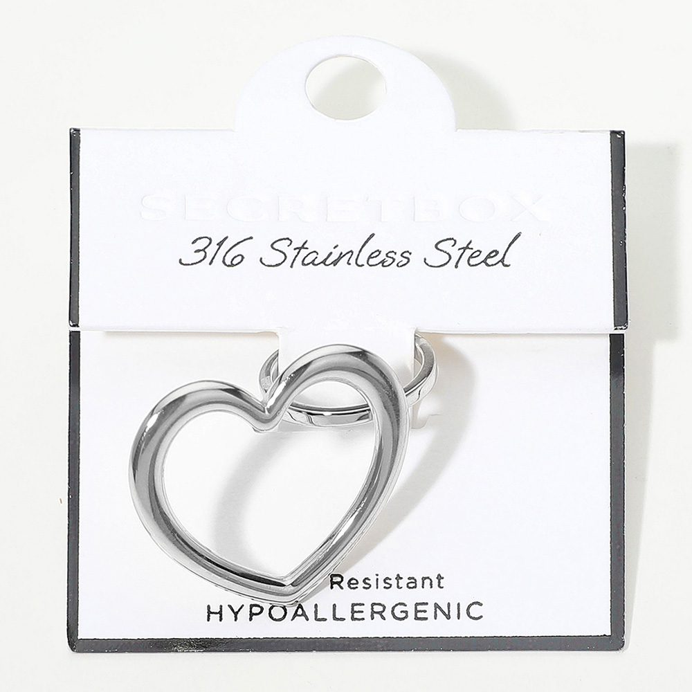 SECRET BOX_Stainless Steel Adjustable Open Heart Ring