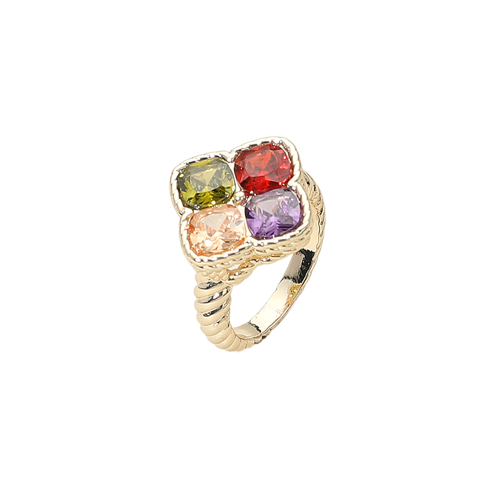 Square Colorful CZ Gemstone Accent Ring