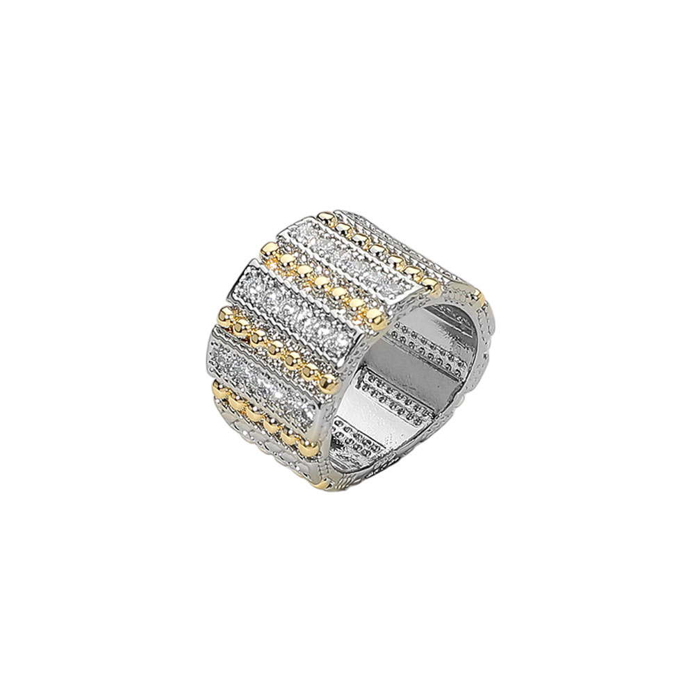 Details • Size : 0.6" H • A bold wide-band ring designed with intricate textured detailing that adds depth and sparkle from every angle. Its layered look makes it a standout accessory, perfect for elevating everyday outfits or adding a touch of radiance to special-occasion styles. • CZ Cubic Zirconia