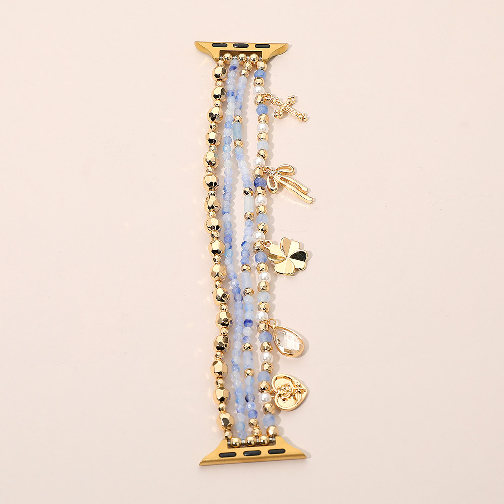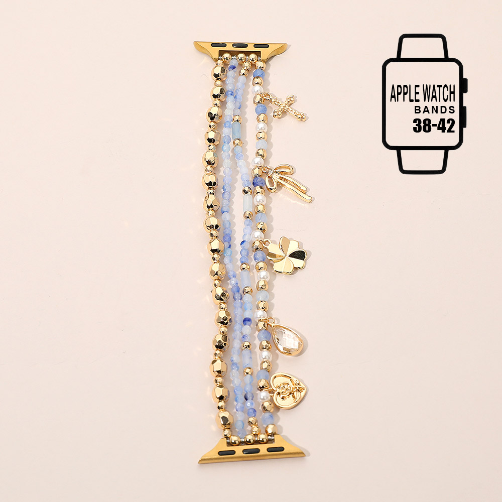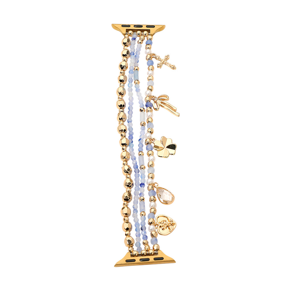 Bow Clover Heart Cross Charm Dangle Floral Ceramic Ball Pearl Beaded Multi Layered Apple Watch Band