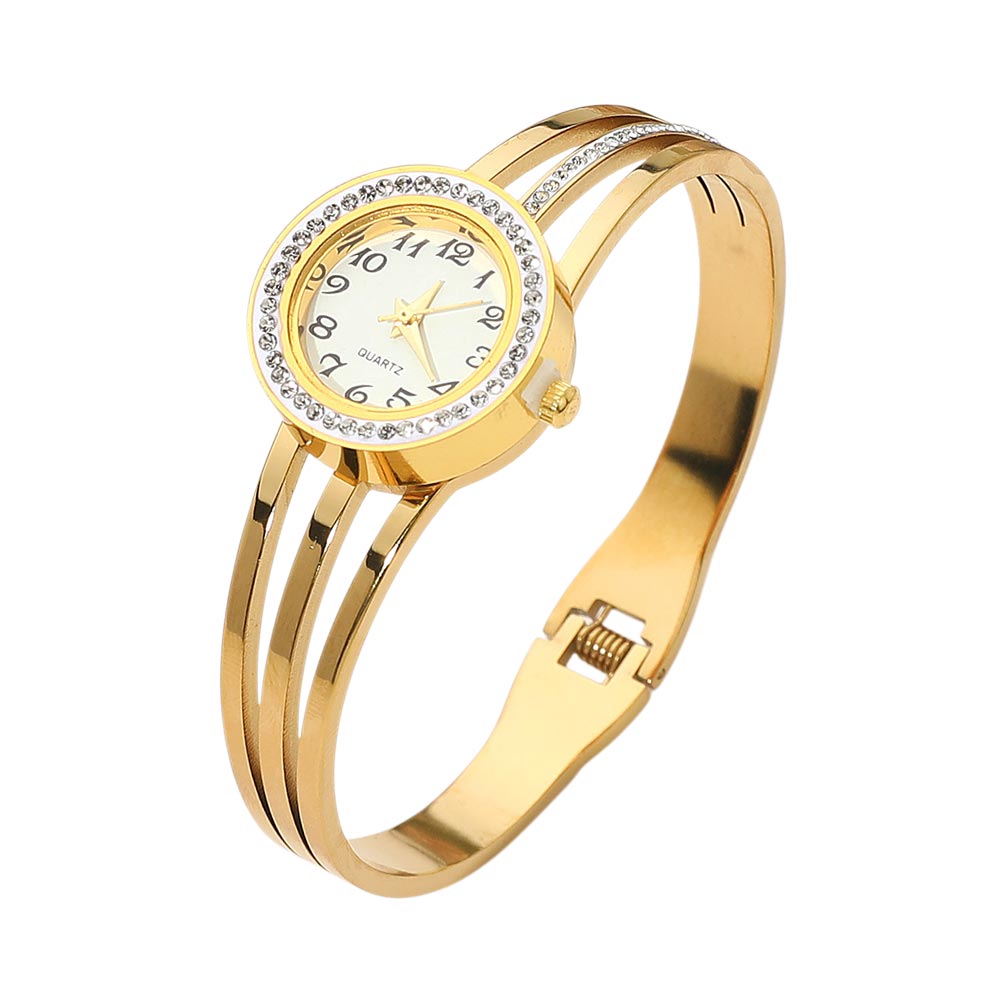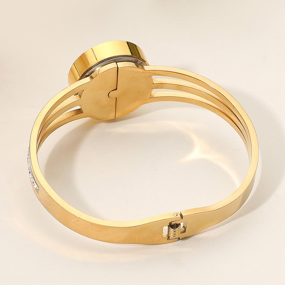 • Add timeless sophistication to your look with this elegant bangle-style quartz watch. Featuring a slim triple-band bracelet and a crystal-accented bezel, this chic timepiece perfectly balances fashion and function, making it an ideal accessory for any occasion.