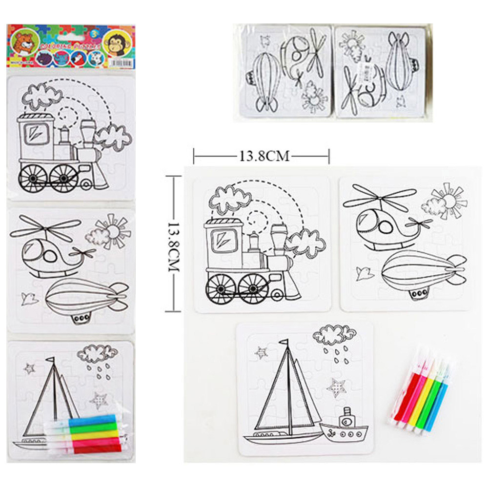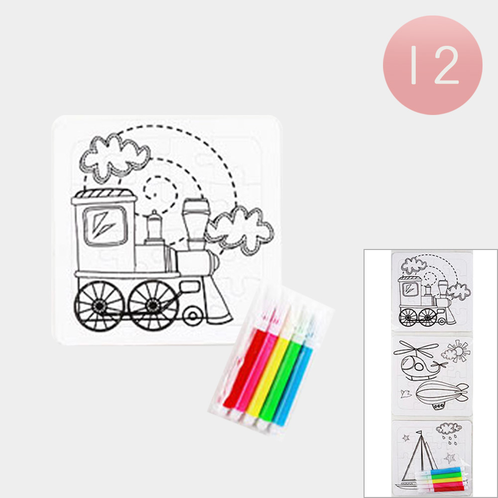 12 Set of 3 - Cute Train Transportation Coloring Puzzle Pen Sets