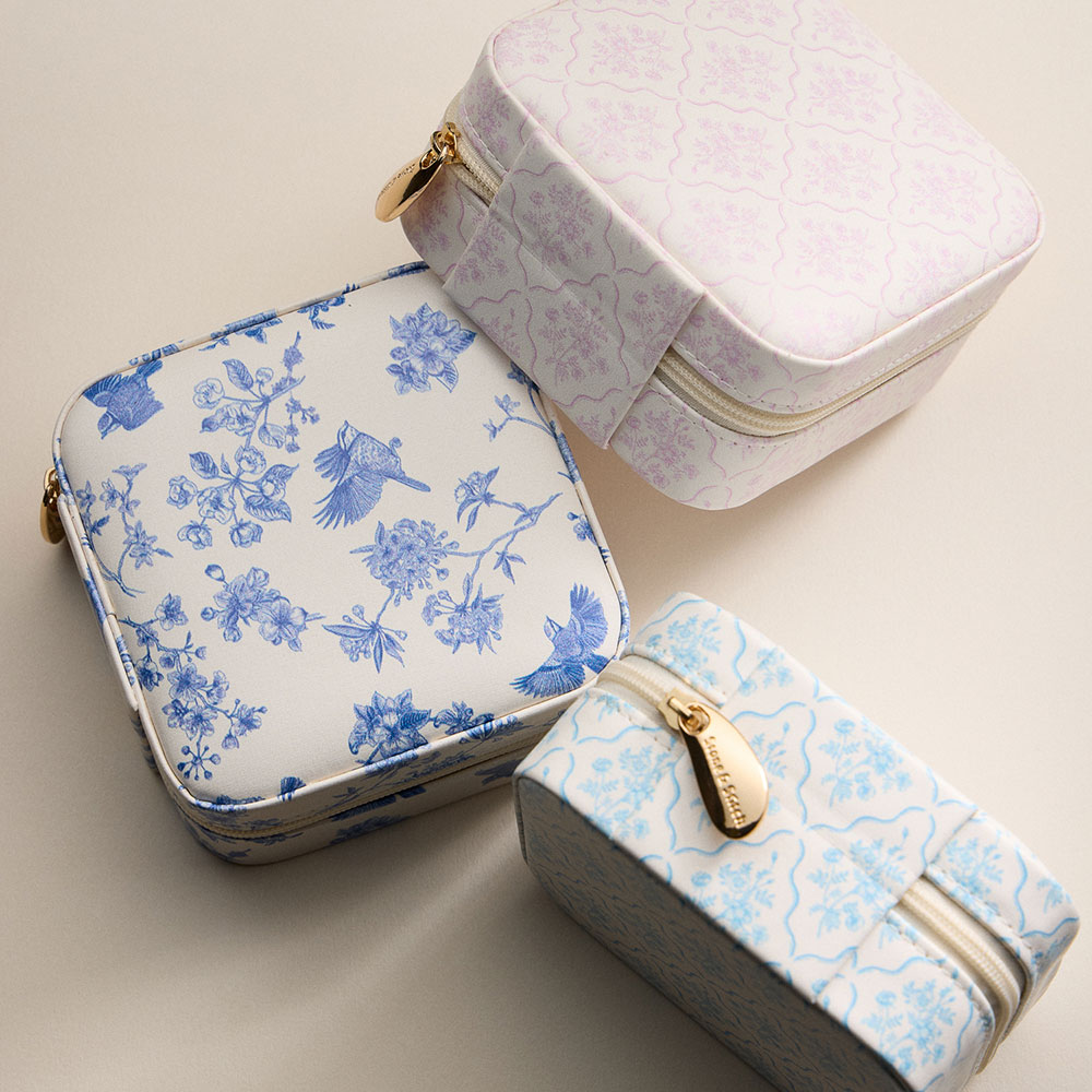 Details • Size : 3.75" X 3.75" X 1.75" • Zipper Closure • Organize and protect your jewelry in this charming travel case featuring a delicate bird and floral design. Inside, divided compartments and a secure ring holder keep accessories tangle-free, while a built-in mirror adds convenience for styling on the go. Lightweight, zip-closed, and perfect for storing rings, earrings, and necklaces at home or while traveling.