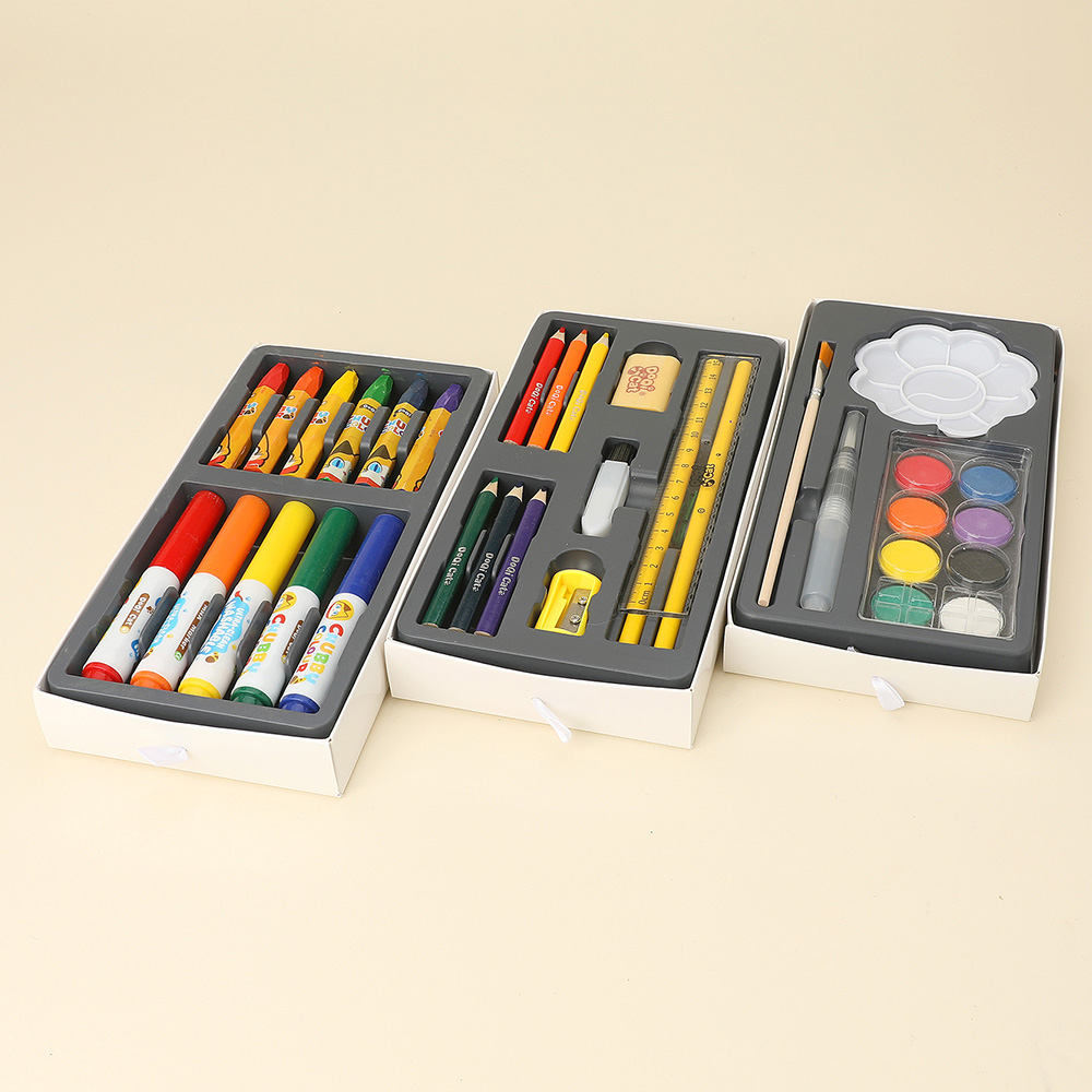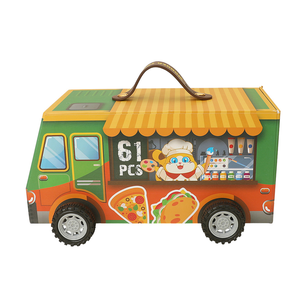 Details • Size : 10" X 5" • Top Handle Size : 1.5" L • 1 Ruler, 1 Brush, 1 Eraser, 1 Palette, 15 Stickers, 2 HB Pencils, 1 Blossom Palette, 1 Watercolor Brush, 5 Washable Markers, 1 Coloring Book, 8 Watercolor, 1 Sharpener, 6 Oil Pastels, 6 Color Pencils, 10 Paper Clips Included • Exciting 61-piece art truck set featuring markers, pencils, watercolors, stickers, and more in a fun rolling truck case. Complete with drawers for easy storage, this portable art kit encourages creativity and imagination, making it a perfect gift for young artists and craft enthusiasts.