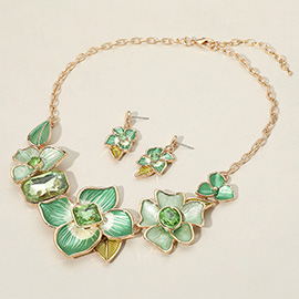 Teardrop Accented Stone Embellished Leaf Evening Necklace