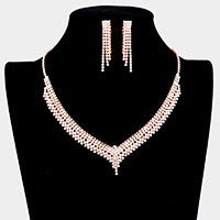 3PCS - Rhinestone Pave Dangle V Shaped Necklace Set