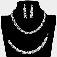 3PCS - Crystal Rhinestone Pave Accented Necklace Jewelry Set