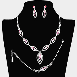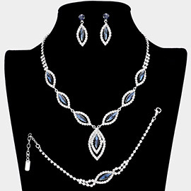 Marquise Stone Cluster Accent Rhinestone Paved Jewelry Set