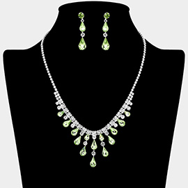 Teardrop Stone Pendant Accent Rhinestone Paved Jewelry Set
