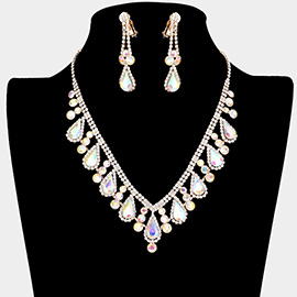 Teardrop CZ Stone Pendant Accent Rhinestone Paved Jewelry Set